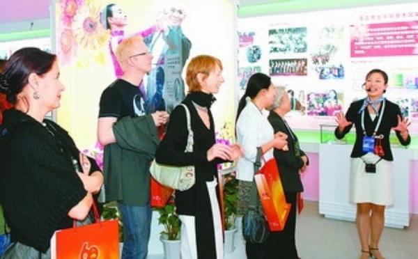 “2008年我国国内生产总值达到300670亿元,经济总量已跃居世界第三位;对外贸易总规模位居世界第二,外汇储备世界第一。”讲解员详细介绍中国的发展变化,引发了外宾的称赞之声。