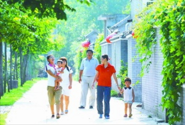 图一:老河口市方营村村民在村里新铺就的通畅整洁的马路上散步,清洁、规整、树绿花红的家园让村民们倍感自豪。近年来,老河口市以百镇千村示范工程建设为契机,通过集中整治村容村貌这一突破口,大力推进新农村建设,使农村生态环境和人居环境发生了巨大变化,初步形成了整洁、自然、生态、和谐的农村环境。