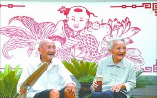 图二:朱楼村84岁的村民朱旭(左)、83岁的村民刘凤英(右),见证了该村数十年的变化:现在喝的自来水,走的水泥路,晚上还有路灯……我们真是做梦也想不到能过上跟城里人一样的日子!