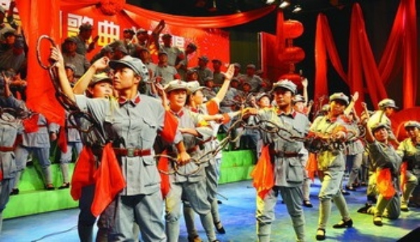 左图 河北任丘市机关干部在表演反映红军长征的节目。 任 宣摄