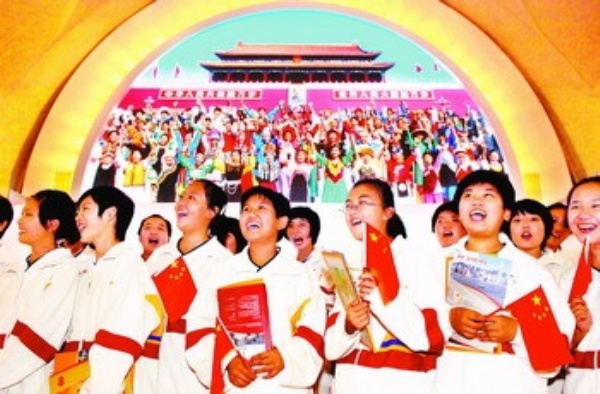 9月27日,北京新桥路中学宏志班的学生来到北京展览馆,参观“辉煌六十年———中华人民共和国成立60周年成就展”。 本报记者 李树贵摄