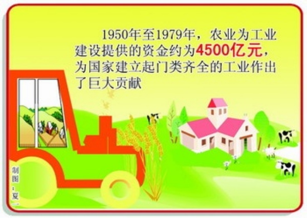 1950年至1979年,农业为工业建设提供的资金约为4500亿元,为国家建立起门类齐全的工业作出了巨大贡献。