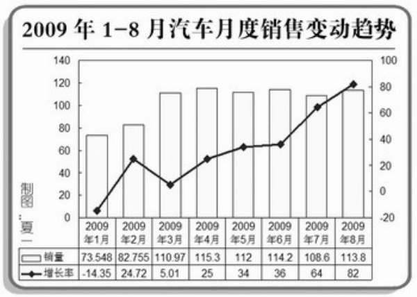 日前,中国汽车工业协会公布了8月汽车产销情况,这份最新的成绩单和盛夏的天气一样,用一个词形容就是“火热”。据统计,8月我国汽车产销分别完成114.07万辆和113.85万辆,比上月分别增长2.62%和4.71%。我国汽车产销已连续六个月达到百万辆水平,连续两个月同比出现50%以上的高速增长。中国汽车工业协会认为,今年以来汽车产销持续出现较好的增长势头,7、8月同比出现高速增长在预料之中,但幅度之大却在预料之外。
