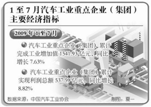 除了数量上的增长,企业经济效益的明显好转则从另一个侧面反映着汽车工业的积极变化。从此次公布的1至7月汽车工业19家重点企业(集团)经济效益指标快报看,前7个月在汽车产销大幅增长的拉动下,企业主要指标均好于上年同期。其中1至7月汽车工业重点企业(集团)累计实现利润总额537.59亿元,同比增长8.82%,由1至6月的负增长变为正增长;累计完成工业增加值1541.93亿元,同比增长7.63%。