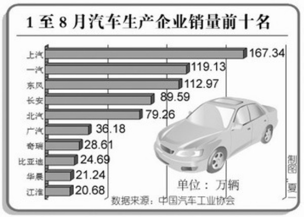 特别值得一提的是,今年以来在政策和市场两大因素的作用下,乘用车市场的产品结构出现了调整,成为汽车市场最大的亮点。比较节能的低排量乘用车产品增长明显好于高排量产品。这符合国家有关政策的预期,也对车市的增长起到了关键的拉动作用。前8个月1.6升及以下排量的乘用车增长了55.5%,比乘用车同期增速高18.7个百分点,其占总量的比重为70%。而另一方面,较高排量的产品也出现了一定程度的增长,前8个月1.6升以上的轿车增长已由负转正,同比增长4%。中国汽车工业协会认为,这些现象说明我国汽车市场正全面发展、趋向成熟。