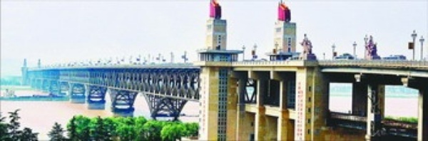 | 下图 南京长江大桥是上世纪70年代新中国第一座依靠自己的力量设计施工建造而成的铁路、公路两用桥,开创了我国自力更生建设大型桥梁的新纪元。 |