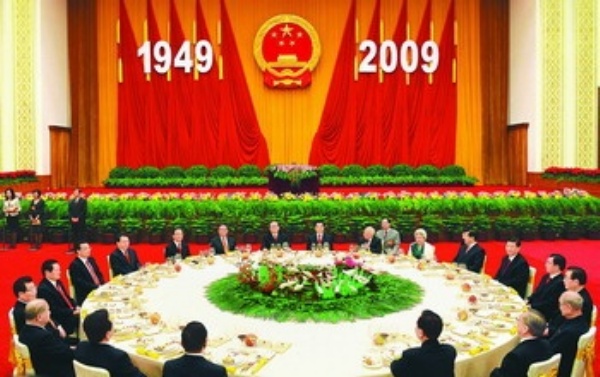 在欢乐的乐曲声中,中外朋友频频举杯,共庆新中国60华诞,共祝中国更加繁荣富强。
