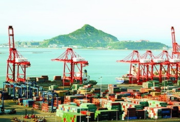 上图:连云港港现代化的集装箱码头。杨增泰摄