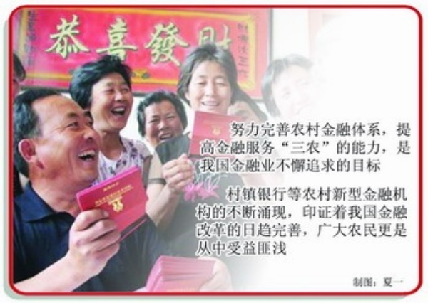 努力完善农村金融体系,提高金融服务“三农”的能力,是我国金融业不懈追求的目标。翻山越岭到农户家走访,进猪圈钻大棚调查贷款户的情况,沿着街道挨门挨户发放宣传材料……这些点滴瞬间经常浮现在湖北仙桃北农商村镇银行行长毛文利眼前。他说,“我们行是首家跨省独资设立的村镇银行,作为第一代村镇银行人,我们把办好村镇银行作为自己的使命,把服务‘三农’、建设新农村作为自己的责任。”
