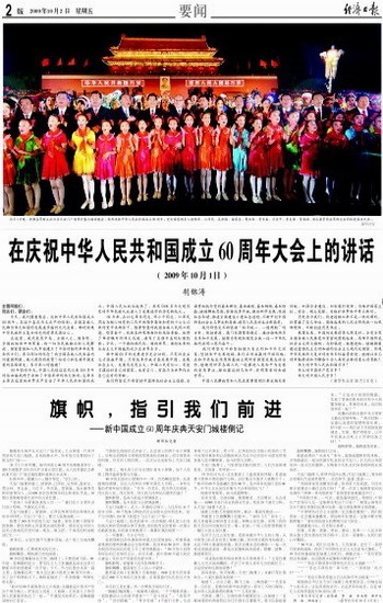 在庆祝中华人民共和国成立60周年大会上的讲话