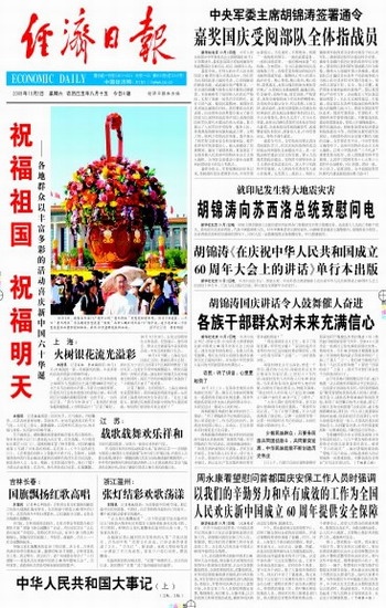 在复旦大学,师生们集体观看了国庆庆典。2007级国际政治系学生德力夏提·赛塔尔兴奋地说:“听了总书记的讲话,看到阅兵式上展示这么多先进的国产军事装备,令我非常自豪。经过各族人民60年的共同努力,祖国正在变得越来越强大。只有祖国富强、民主、文明、和谐,各族人民才能过上幸福美好的生活。”