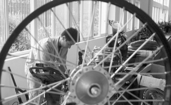 在安徽省庐江县庐城镇农民工创业园,当地农民在一家电动车公司装配电动车(9月10日摄)。 2008年以来,安徽省各地抓住农民工陆续返乡的时机,启动农民工创业园建设,实行房租水电减免、税费减免、提供创业资金支持等优惠政策,为返乡农民工创业、就业搭建平台。截至2009年5月底,安徽省第一批103个创业园中,已有66个建成并投入使用,吸纳229个项目或企业入园,带动