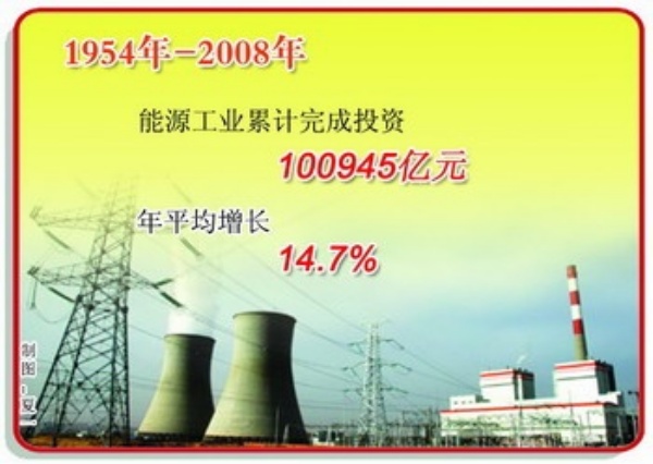 新中国成立60年来,能源生产基础设施和装备极大改善,科技水平显著提高,初步形成了以煤炭为主体、电力为中心、石油天然气和可再生能源全面发展的能源供应格局,建立了较为完善的能源生产和供应体系;主要能源产品品种和产量大幅度增加,能源生产和供应保障能力极大增强,供给状况极大改善,供需矛盾极大缓解;能源消费结构更加合理,能源利用效率显著提高,能源节约成效显著。