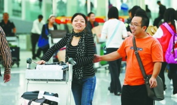 上图:10月7日,旅客走出北京首都机场T3航站楼。国庆长假即将结束,航空、铁路、长途客运返程人数大幅增加,北京迎来国庆长假返程客流高峰。