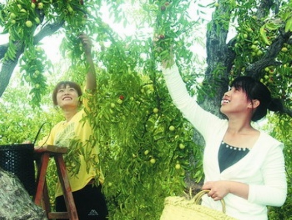 下图:游客在果园采摘冬枣。双节假期,河北省黄骅市一年一度的冬枣节吸引了众多游客。