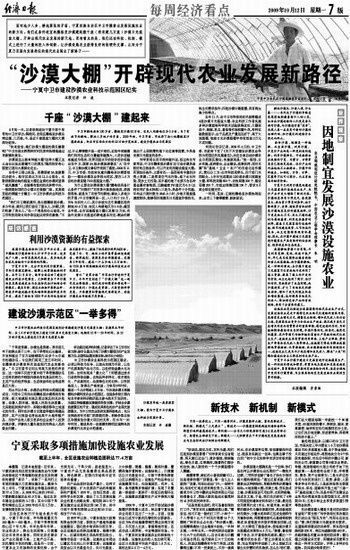“沙漠大棚”开辟现代农业发展新路径———宁夏中卫市建设沙漠农业科技示范园区纪实