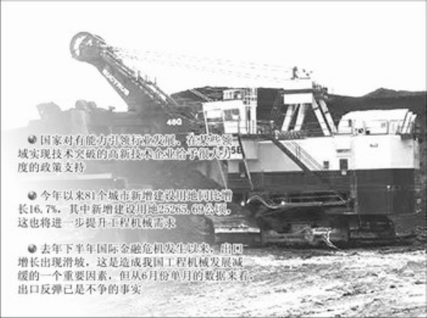 与此同时,外需的反弹有望为优势企业的业绩添彩。中国工程机械工业协会副秘书长茅仲文指出,虽然今年上半年,行业出口尚未完全恢复,但市场格局的调整、产品的升级换代、行业的重组并购,都正在为优势企业的脱颖而出提供发展机遇。