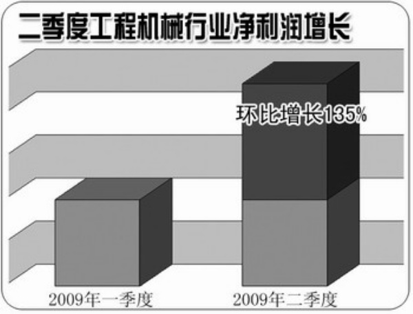 二季度业绩环比大幅增长是工程机械企业今年半年报的显著特点。受益于二季度国内机械行业复苏,工程机械行业实现净利润环比增长135%。