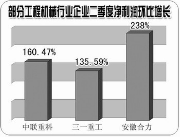 半年报显示,二季度多数企业净利润都比一季度增长100%以上,这表明工程机械企业经营状况逐渐回暖。