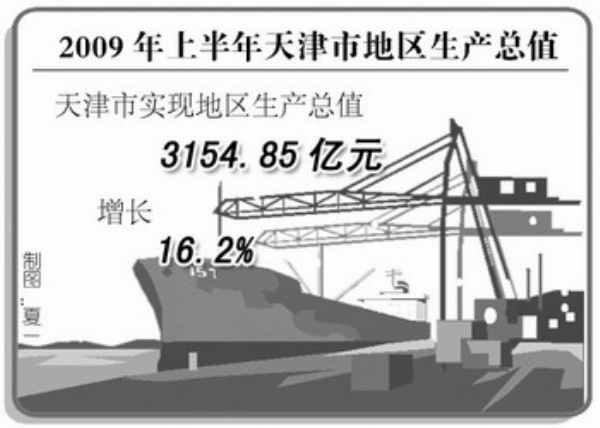 面对国际金融危机的影响,天津市深入贯彻落实科学发展观,创新思路,及时提出了以自主创新和大项目为依托,以“保增长、渡难关、上水平”为保证,以三区联动为发展战略的措施,实现了经济又好又快发展。上半年,天津市实现地区生产总值3154.85亿元,增长16.2%。