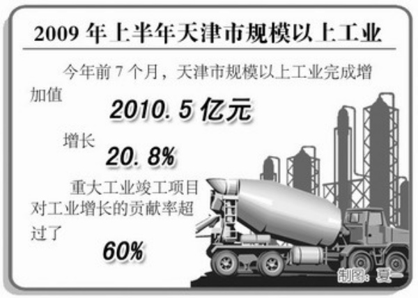 今年前7个月,天津市规模以上工业完成增加值2010.5亿元,增长20.8%,重大工业竣工项目对工业增长的贡献率超过了60%。今年以来,三星电子扩能、天铁热轧板卷等23个工业项目建成投产,53个项目在建,大项目、好项目支撑工业发展的格局已形成;工业投资增势强劲,增长46.9%,创历史最好水平。