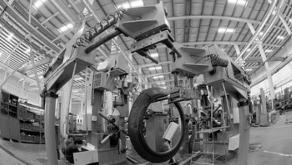 天津赛象科技股份有限公司经过20年来的不断创新和发展,广泛应用光机电一体化等一系列高新技术,开发研制了20多个系列、80余种规格的子午线轮胎系列设备,其中大多数为国内首创。 杨宗友摄 (新华社发)