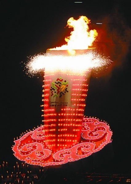 上图:10月16日,第十一届全国运动会开幕式在山东济南奥体中心体育场举行。这是在开幕式上被点燃的主火炬。 新华社记者 杨宗友摄