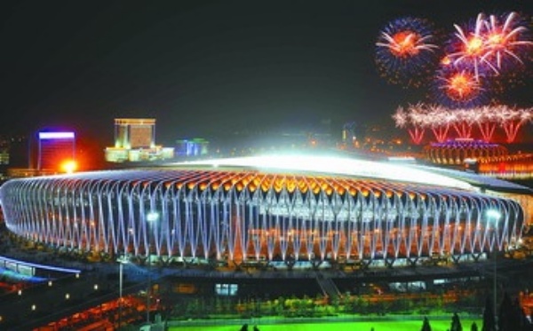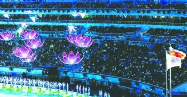 下图:10月16日,第十一届全国运动会开幕式在山东济南举行。这是在开幕式上的文艺表演。