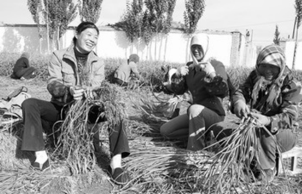 金秋十月,甘肃玉门市玉门镇东渠村的蒜苗地里一片繁忙景象。今年,玉门市加快发展特色农业,积极实施“农业特色年”计划,全年引进、推广西红柿、辣椒、白菜等系列新品种80个,蔬菜年总产值预计达1.7亿元,同比增长12%。 本报记者 李琛奇 通讯员 方 圆 摄影报道