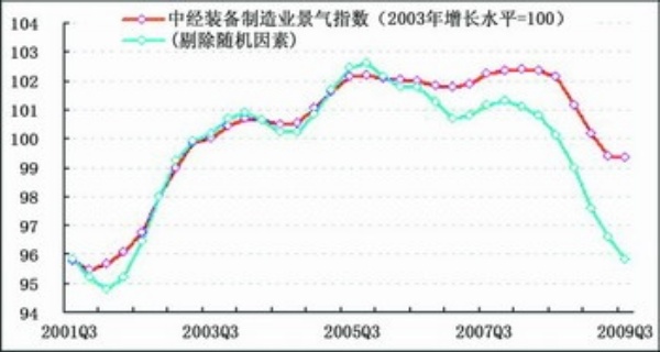 2009年三季度,中经装备制造业景气指数为99.3点(2003年增长水平=100),与上季度基本持平③,降幅大幅收窄。