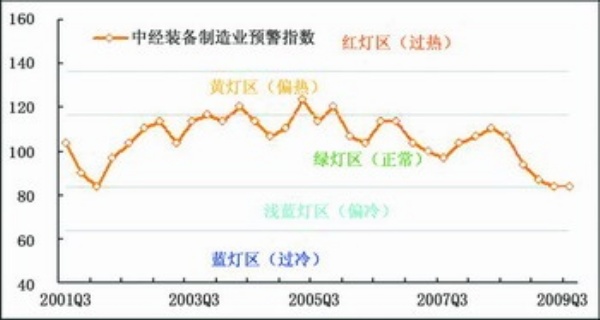 ②2003年装备制造业的预警灯号基本上在绿灯区,相对平稳,因此定位装备制造行业景气指数的基年。