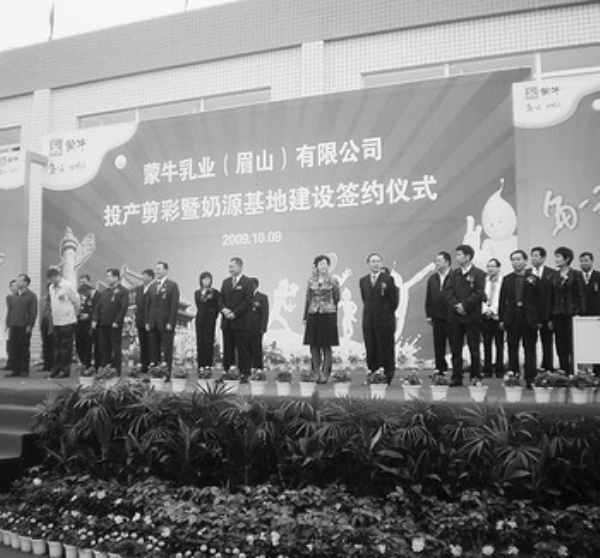 左图 蒙牛乳业(眉山)有限公司投产剪彩暨奶源基地建设签约仪式现场。