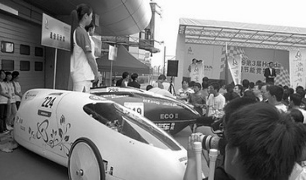 图2:在日前举办的2009第三届Honda中国节能竞技大赛上,来自大学、企业等各方的120辆节能创意车云集赛场。 本报记者 张 雅摄