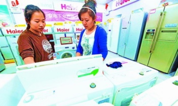 10月22日,顾客在福建省平潭县一家商店选购家电下乡产品。