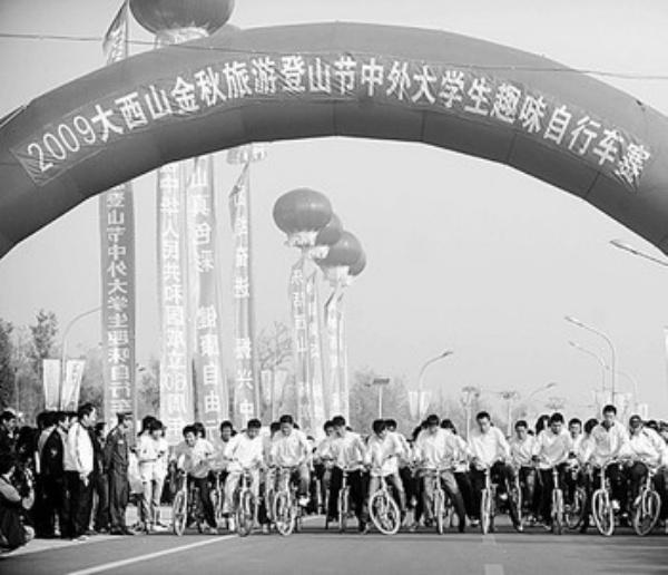 10月24日,一场别开生面的中外大学生趣味自行车赛在北京市海淀区大西山旅游区举行。当日,名为“西山风景长廊”的北京大西山旅游路正式建成通车。 龙 轩摄