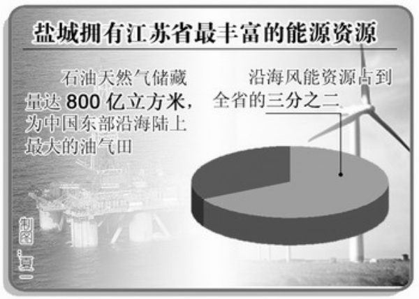 盐城处于江苏沿海承南接北的中心区位,沿海开发将抢抓长三角一体化进程加快的机遇,充分利用两个国家战略的叠加优势,把盐城建成长三角北拓门户和产业梯度转移的先导基地。盐城还将发挥在土地、环境容量、运输条件、风能资源、能源项目选址等多方面的比较优势,把盐城建成以风电、生物质发电为主的国家重要的能源基地和新能源装备制造基地。