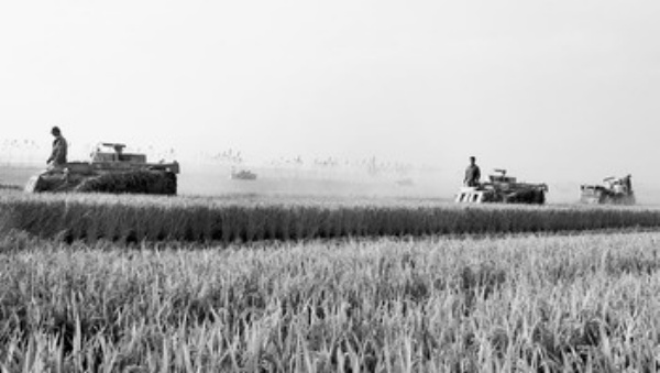 10月26日,安徽霍邱县孟集镇农民驾驶收割机在稻田里收割秋稻。安徽省六安市霍邱县是国家商品粮基地县,自2005年以来,连续四年荣获“全国粮食生产先进县标兵”荣誉称号。今年,该县粮食播种面积325万亩。在部分乡镇遭遇不利气候影响的情况下,全县粮食总产量预计达166.5万吨。 陈 力摄(新华社发)