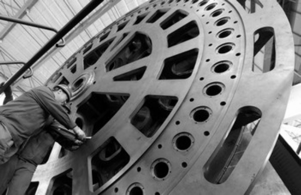 10月26日,齐齐哈尔第二机床集团公司工人在车间内工作。该企业通过改制重组融入中国通用技术集团。今年1月至9月,企业完成工业总产值、工业增加值、销售收入分别同比增长15%以上,在重型机床行业排名第一。