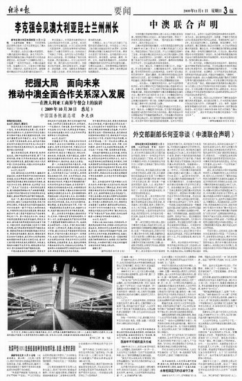 把握大局 面向未来 推动中澳全面合作关系深入发展