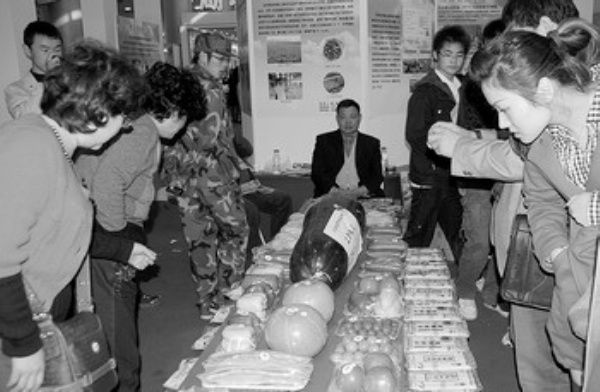 第十六届中国杨凌农业高新科技成果博览会11月1日在杨凌示范区开幕。图为来自陕西、山西等地的参会人员在参观农产品。 本报记者 夏先清摄