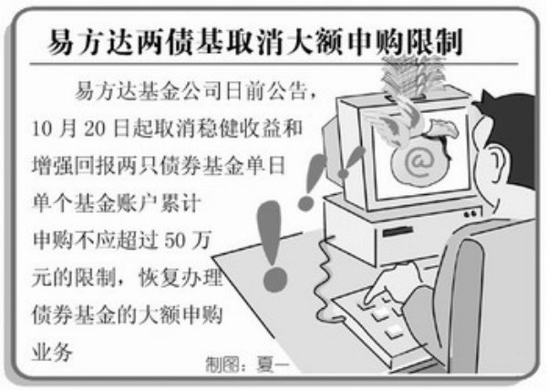 本报讯 基金研究人士指出,稳健收益和增强回报两只债券基金当初限制大额申购主要是为了防止大资金短期套利、保护老持有人利益,恢复大额申购业务后,新的资金进入有助于基金把握当前市场新出现的投资机会。 (王 璐)