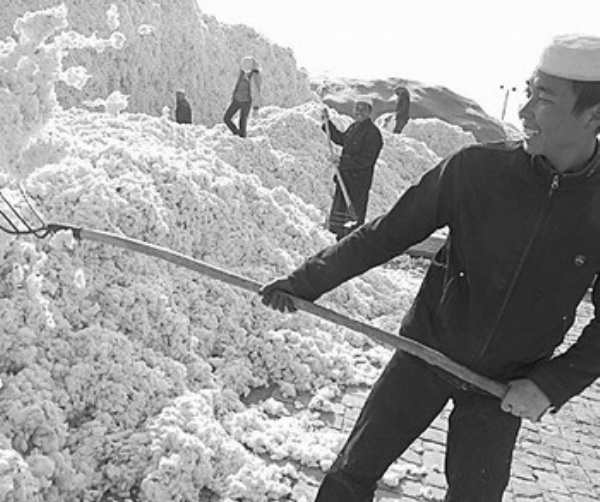 上图:今年甘肃省玉门市7万亩棉花喜获丰收,产量达1000多万公斤,棉农仅此一项户均可收入4500多元。