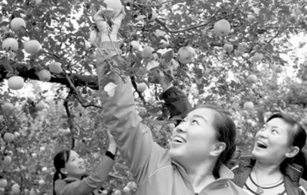 10月27日,河北省保定市顺平县万亩苹果园获得大丰收,吸引了众多游客前来采摘观光。近年来,顺平县积极发展特色种植业,促进了农民增收,果农人均年收入上万元。 本报记者 李景录 通讯员 李 昕摄影报道