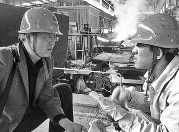 上图:宁波市北仑区发改局机关干部借助“8718”服务平台到宁波钢铁公司为企业排忧解难。陈未鸣摄