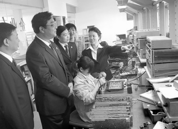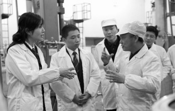 下图:南京玄武区法院的法官们深入熊猫集团生产一线,为企业提供法律服务。