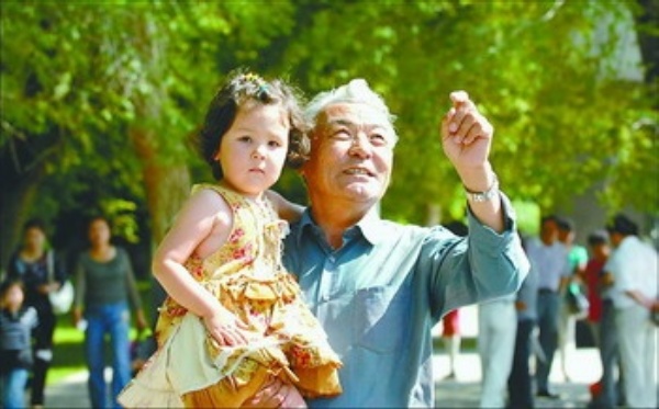 图2:65岁的哈萨克族老人焦尔达斯是塔城市的居民,他最喜欢给小孙女讲家乡的过去和现在,期望她能从小就珍惜这来之不易的幸福生活。
