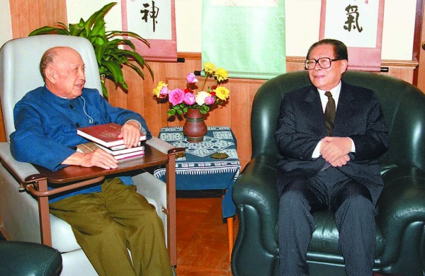 图3:1996年12月11日,江泽民同志到时任全国政协副主席的钱学森同志家中看望。