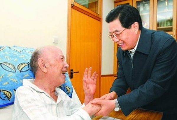 图4:2008年1月19日,胡锦涛同志到钱学森家中看望。