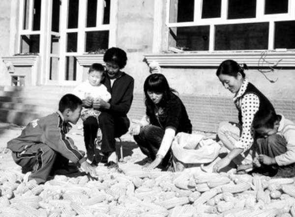 今年以来,新疆维吾尔自治区认真贯彻落实中央各项政策措施,努力克服国际金融危机带来的不利影响,调控政策效果初步显现,经济企稳回升态势明显。据自治区统计局相关负责人介绍,新疆粮食产量大幅上升,第一产业前三季度完成增加值649.74亿元,增长4.6%。图为新疆伊犁地区玉米大丰收,村民正在晾晒玉米。