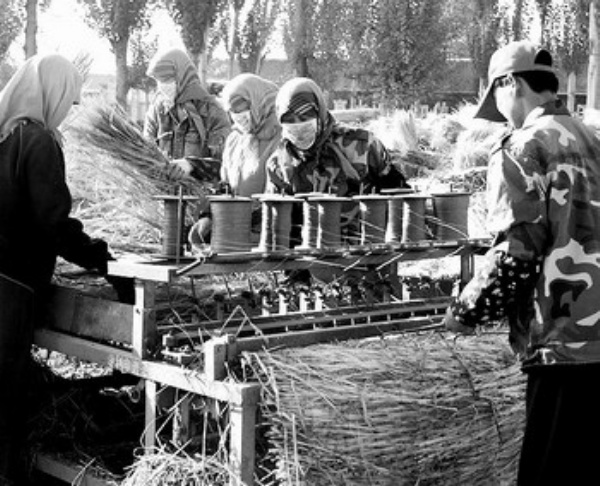 盛产“乌江贡米”、素有“鱼米之乡”之称的甘肃张掖市甘州区乌江镇,今年利用万亩水稻,成立农民专业合作组织6个,草编协会年生产草席18万件,实现经济收入500多万元。图为农民正在进行稻草编生产。 本报记者 李琛奇